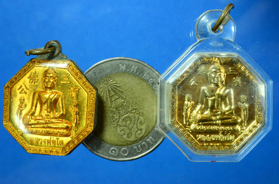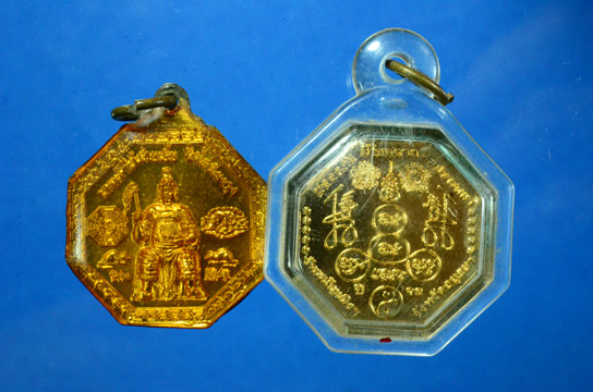 100 ส่งด่วน*เหรียญแปดเหลี่ยม หลวงพ่อโต วัดพนัญเชิง เนื้อกะไหล่ทอง หลังเทพจีน จ.อยุธยา สวยครับ2 เหรียญ |
