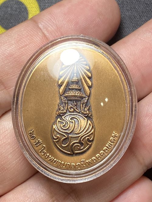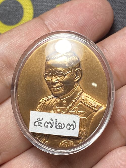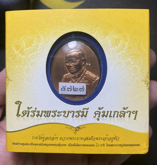 รูปหล่อ ร.9 ใต้ร่มพระบารมี คุ้มเกล้าฯ ทองแดง กล่องเดิม