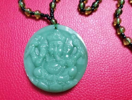 สร้อยคอหินสีหยกพระพิฆเนศ ตัวสร้อยเม็ดหยกชินเจียงเขียว ยาว 15 นิ้ว องค์พระพิฆเนศ ขนาดใหญ่ กว้าง 4.5 ซม. สูง 4.5 ซม. หนาประมาณ 3 มิล