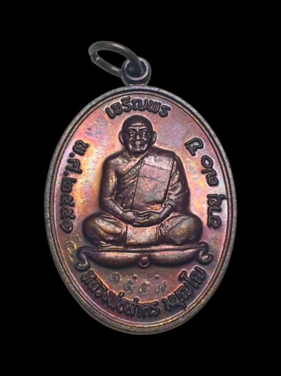 เหรียญเจริญพรบน เนื้อทองแดงรมดำ ปี 2551 หลวงพ่อสาคร วัดหนองกรับ สวยแชมป์ จมูกโด่ง