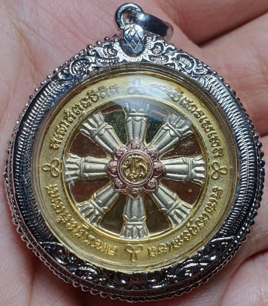 เนื้อโลหะชุบ3กษัตริย์พ่นทรายขัดเงา ฝังพลอยสีประจำวันเกิด พิธีดีและสุดยิ่งใหญ่ สภาพสวยสมบูรณ์ผิวพรรณสวยเดิม พร้อมเลี่ยมกรอบไมครอนเงินฝังเพชรCZเดิมๆและพร้อมกล่องเดิมจากวัดครับ