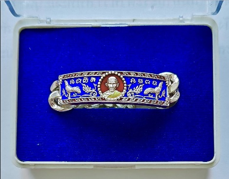เลสเงินข้อมือ 2บาท หลวงพ่อรวย วัดตะโก รุ่นสรงน้ำเสาร์5 รวย รวย รวย ปี63 เนื้อเงินลงยา สวยๆพร้อมกล่องเดิมและบัตรรับรองพระแท้ |