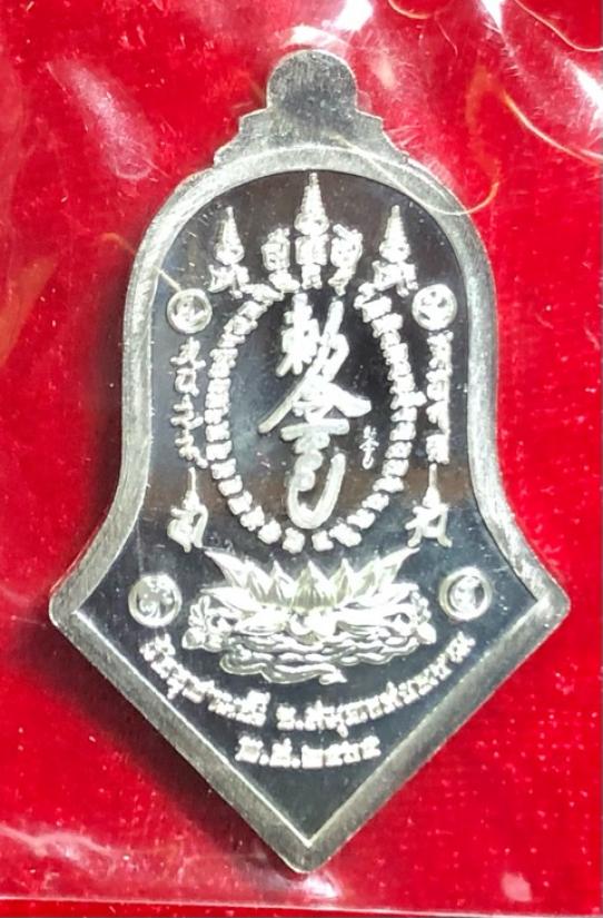 เหรียญกันชง ทรงจำปี หลวงพ่ออิฏฐ์ วัดจุฬามณี เนื้อเงินพิมพ์ใหญ่ ลงยาสีดำ ซีลเดิมกล่องเดิม