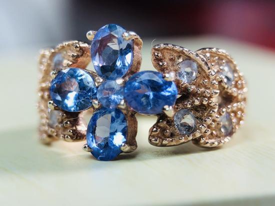 แหวนเงินแท้ 925 เต็มเปอร์เซ็น ชุบพิงคโกล พลอยแทนซาไนท์ |