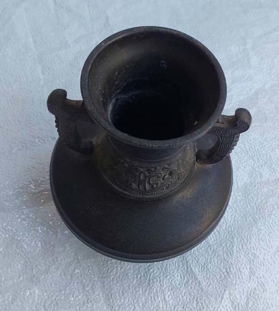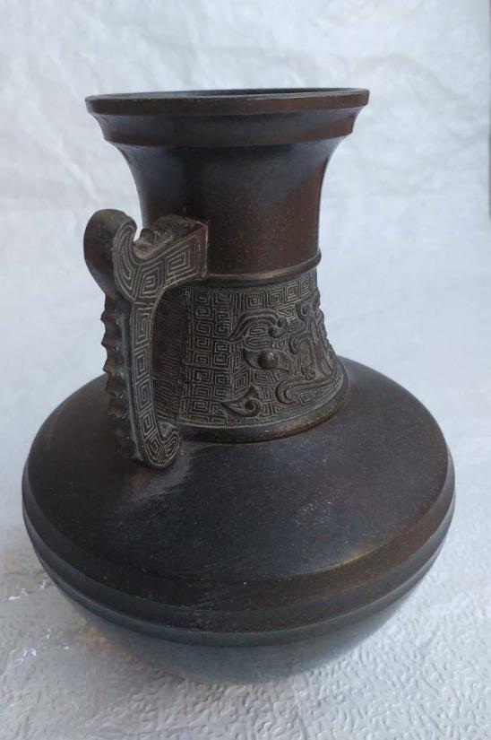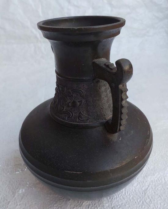 ***วัดใจ***แจกันบรอนซ์โบราณวากุโมะ สไตล์โชวะเรโทร ของญี่ปุ่น สูง 9 นิ้ว น้ำหนักโลกว่า