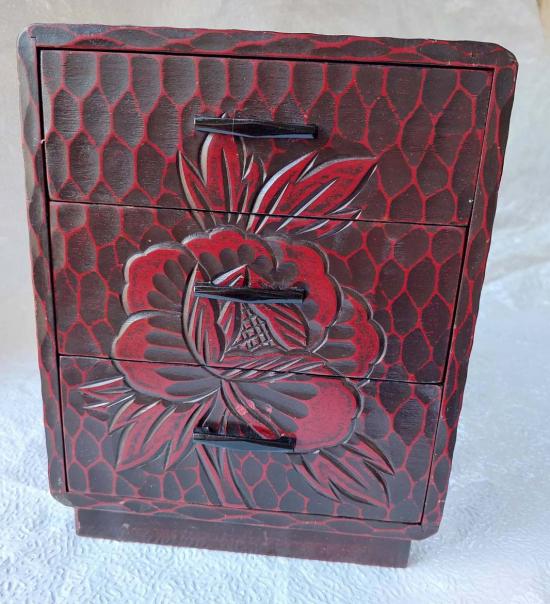 ***วัดใจ***กล่องไม้วินเทจญี่ปุ่นคามาคุระโบริ งานฝีมือเก่าแกะลายญี่ปุ่น 3 ลิ้นชัก สามารถวางพระบูชา 5 นิ้วได้