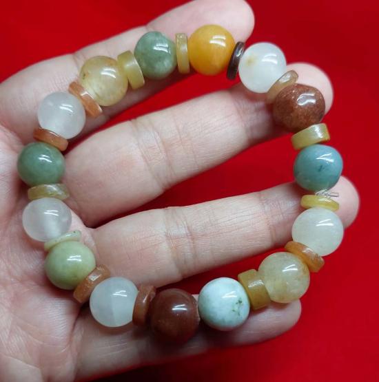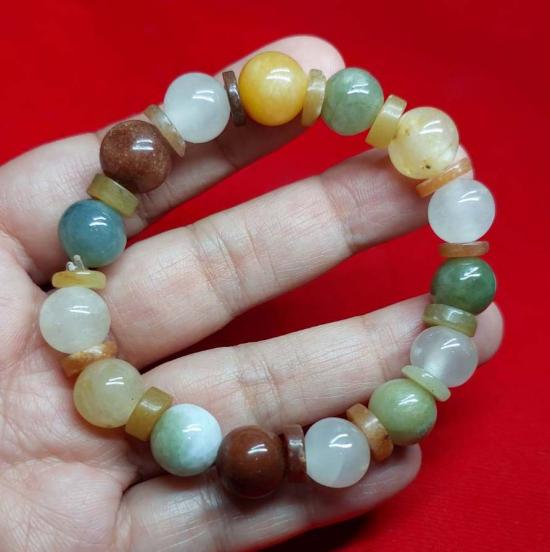***วัดใจ***สร้อยข้อมือ หยกพม่าแท้ 5 สี หยกธรรมชาติ |