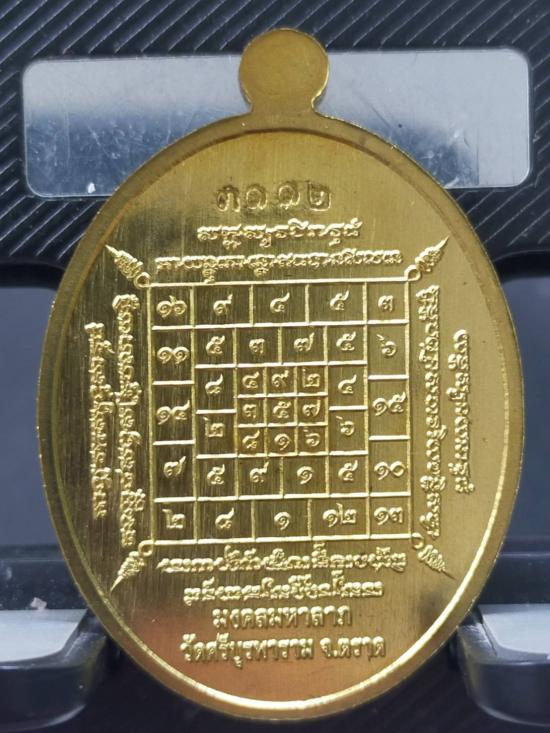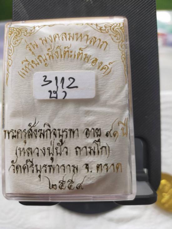 หลวงปู่บัว รุ่น มงคลมหาลาภ เหรียญนั่งโต๊ะเต็มองค์ หมายเลข 3112 เนื้อเหลือง พร้อมกล่องเดิม |