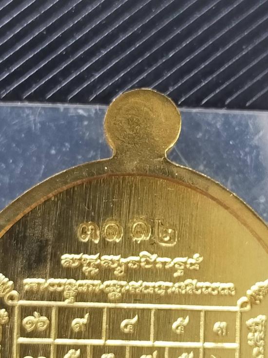 หลวงปู่บัว รุ่น มงคลมหาลาภ เหรียญนั่งโต๊ะเต็มองค์ หมายเลข 3112 เนื้อเหลือง |