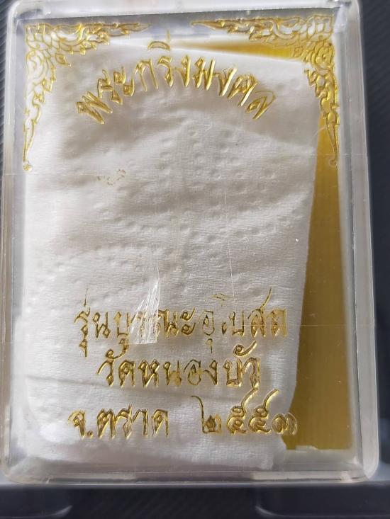 รายละเอียด พระกริ่งมงคล รุ่นบูรณะอุโบสถ วัดหนองบัว จ ตราด หลวงปู่บัว ปลุกเสกให้ ปี พ.ศ. 2553 กล่องเดิม