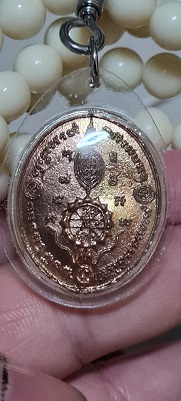 เหรียญหล่อดวงโพธิญาณกำลังแผ่นดิน (รุ่นดวงเหนือดวง)เนื้อสำริด หลวงตาม้า วัดถ้ำเมืองนะ พร้อมรอยจารหลวงตาม้า เลี่ยมจากวัดพร้อมประคำ