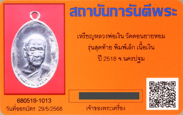 เหรียญรุ่นสุดท้าย หลวงพ่อเงิน วัดดอนยายหอม เนื้อเงิน ปี2518 สร้างน้อย หายาก เหรียญนี้สภาพสวยเดิมครับ
