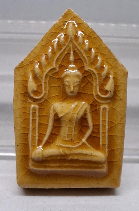 องค์นี้เป็นพระพิมพ์ขนาดจิ๋ว มีขนาด 1.7 X 2.7 c.m. เคลือบสีเขียวด้านหน้า หลังยันต์หมึก มาพร้อมกล่องเดิม