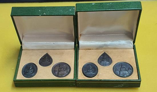 วัดใจชุดเหรียญพระแก้วมรกต 3 ฤดู วัดพระแก้ว ฉลองกรุง 200 ปี 2525 เนื้อทองแดงรมดำ กล่องเดิม จำนวน2ชุด