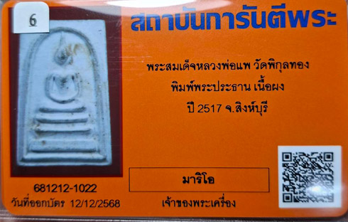 พระสมเด็จฐานแซมหลังรูปเหมือน หลวงพ่อแพ วัดพิกุลทอง ปี 2517