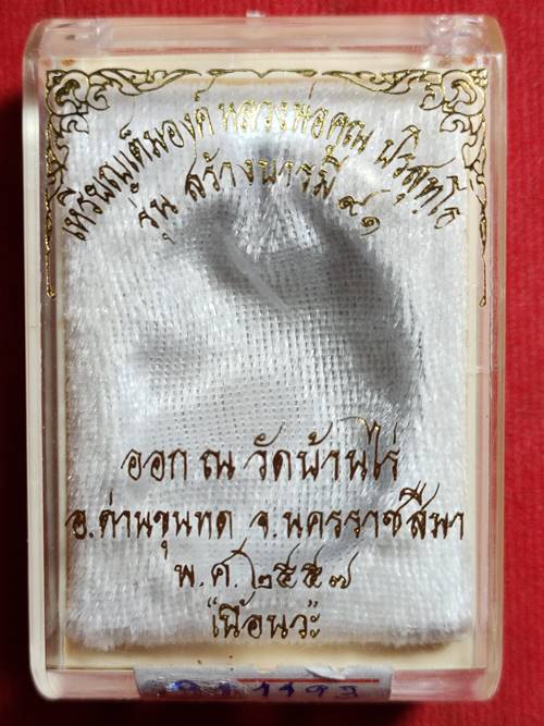 เหรียหลวงพ่อคูณ ปริสุทโธ รุ่น สร้างบารมี 91 ตำนานผู้สร้างคนเดียวกันกับ ปี 19 รุ่นแรก ที่โด่งดังมาแล้ว ออกวัดบ้านไร่ ปี 57 เนื้อ นวะ หมายเลข 1193 สภาพสวย เคาะเดียวแดง |