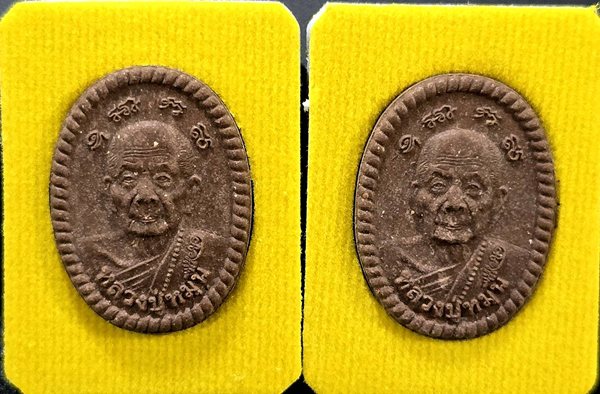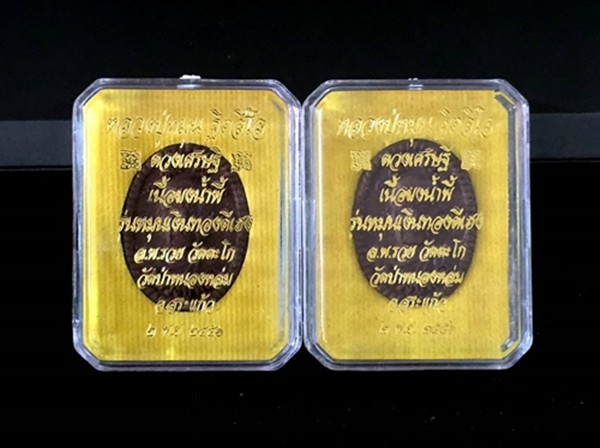 (2 องค์) . สภาพสวย . เท่าไหร่ เท่านั้น ... พระผงดวงเศรษฐี (บล็อกแรก) หลวงปู่หมุน เนื้อผงน้ำพี้ ปี 2556 + กล่องเดิม |