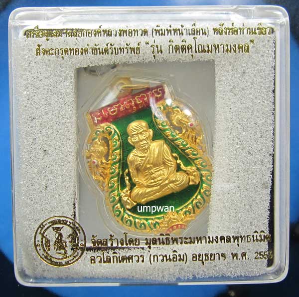 "วัดใจ" เหรียญเสมาฉลุยกองค์หลวงพ่อทวด(พิมพ์หน้าเลื่อน)หลังพ่อท่านเขียว ฝังตะกรุดทองคำยันต์รับทรัพย์ "รุ่น กิตติคุโณมหามงคล" เนื้อบรอนซ์ชุบทอง ลงยาซุ้มพญานาคฉากสีเขียว สภาพสวยพร้อมกล่องเดิม หมายเลข 403 |