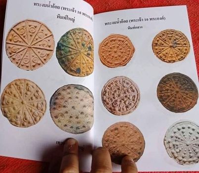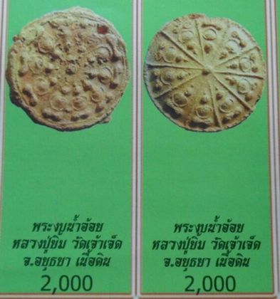 พระเครื่องของหลวงปู่ยิ้มที่รู้จักกันดีก็คือ พระงบน้ำอ้อย ทั้งพิมพ์ใหญ่ พิมพ์กลาง และพิมพ์เล็ก เนื้อพระเป็นดินเผาสีหม้อใหม่ เนื้อดินแบบเดียวกับของหลวงพ่อปาน แห่งวัดบางนมโค ส่วนพระเครื่องที่ท่านสร้างนอกจากพระงบน้ำอ้อย แล้วยังมีพระสมเด็จฯ พิมพ์ปรกโพธิ์ พระสมเด็จฯ พิมพ์รัศมี พระร่วงทรงยืนประทานพร พระพุทธทรงเดินลีลา พระพุทธชินราช พระพิมพ์ขุนแผน พระโคนสมอ พระกลีบบัว พระนางพญาพิมพ์ฐานบัว พิมพ์แขนอ่อน พิมพ์หยดน้ำพระหลวงพ่อโต พระพุทธทรงหนุมาน (หันซ้าย-ขวา และเศียรโต) พระปิตตา และนางกวัก ซึ่งเป็นพระเนื้อดินเผาสีหม้อสีหม้อใหม่สีน้ำตาลอิฐ, สีขาวนวล, เนื้อสีเทาอมน้ำตาล, สีเทาอมเขียว, เนื้อเขียวมอยแบบเนื้อผ่านไฟ ซึ่งเป็นพระยุคแรกๆ บางองค์จะทาทับด้วยสีบรอนซ์ทอง หรือสีบรอนซ์เงิน (ให้ดูสวยงาม ) ด้านหลังองค์พระจะมีรอยเสี้ยนไม้กระดาน เนื้อพระจะมีดินทรายละเอียดปนอยู่ มีอายุการสร้างไม่ต่ำกว่า ๕๐ปี ซึ่งพระเครื่องส่วนใหญ่จะสร้างเป็นแบบลักษณะพระกรุเก่าสมัยสุโขทัย กำแพงเพชร หรือพระกรุสมัยต่างๆ ที่มีอายุมากกว่า ๒๐๐ปี หรือว่ามีลักษณะแบบพระโบราณจารย์ เช่นงบน้ำอ้อยของหลวงพ่อเนียม วัดน้อย พระชินราช และพระพิมพ์ขุนแผนหลวงพ่อโหน่ง วัดคลองมะดัน พระสมเด็จพิมพ์รัศมีของหลวงปู่จีน พระสมเด็จพิมพ์รัศมีของหลวงปู่ศุขวัดปากคลองมะขามเฒ่า หรือ พระสมเด็จวัดเกศไชโยของสมเด็จพระพุทธาจารย์โตฯ ที่มีอายุการสร้างประมาณไม่ต่ำกว่า ๑๕๐ปี เมื่อเอ่ยถามถึงหลวงปู่ยิ้ม สมภารวัดเจ้าเจ็ด ด้วยศรัทธาที่เปี่ยมล้นในจริยาวัตรของหลวงปู่ยิ้ม แห่งวัดเจ้าเจ็ด ท่านสร้างพระพิมพ์เนื้อดินเผา ด้วยความตั้งใจที่จะสืบอายุพระศาสนา ความตั้งใจของท่านนั้นจะสร้างให้ครบพระธรรมขันธ์ คือ ๘๔,๐๐๐ องค์ การแกะแม่พิมพ์ แกะจากหินลับมีด ( ลักษณะหินลับมีดโกนของพระ ) โดยมีลูกศิษย์ผู้ใกล้ชิดเป็นผู้แกะให้ และให้พระ, เณร, ลูกศิษย์ใกล้ชิด และเด็กวัดฯ ช่วยกันผสม กดพิมพ์- แกะพิมพ์ และเผาตามพิธีการของท่าน ซึ่งกล่าวกันว่าท่าน ได้แรงบัลดาลใจมาจาก การสร้างพระเครื่องเนื้อดินเผา พระกรุสมัยต่างๆ และจากพระโบราณจารย์ต่างๆ และพระเครื่องของท่านบางพิมพ์สร้างล้อพิมพ์ของวัดบางนมโค, มีบางท่านเล่าว่าพระพิมพ์ทรงสัตว์ของหลวงปู่ยิ้มนั้นช่างที่แกะแม่พิมพ์ของ วัดเจ้าเจ็ดได้ขอต่อวิชา จากช่างที่แกะแม่พิมพ์ของวัดบางนมโค โดยค่าครูสำหรับการต่อวิชาแกะแม่พิมพ์เป็นเงิน ๑บาทในสมัยนั้นฯ |