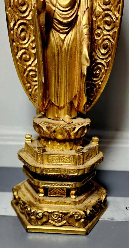 รายละเอียด สูง 9.5 นิ้วองค์พระน่าจะถอดได้หลายถอดแต่ผมไม่กล้าดึง ลงรักปิดทอง