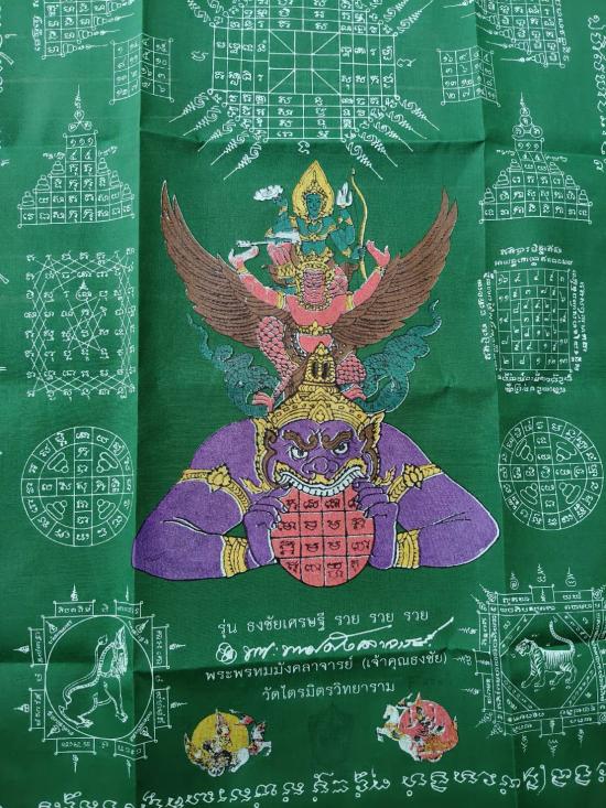 "เคาะเดียว"ผ้ายันต์พระนารายณ์ทรงครุฑ วัดไตรมิตร รุ่นธงชัยเศรษฐี รวยรวยรวย เขียวเหนียวทรัพย์ |