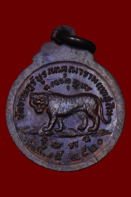 เหรียญเสือยืน พิมพ์เล็ก เนื้อทองแดง หลวงพ่อสมชาย วัดเขาสุกิม 2520 สภาพสวยเดิมๆ แดงวัดใจ 120 |