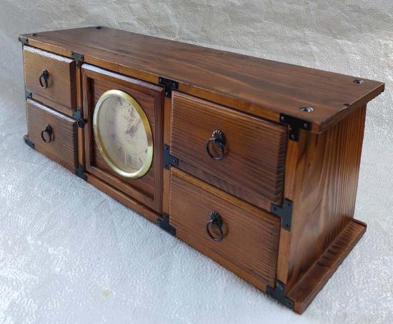 รายละเอียด กล่องไม้วินเทจญี่ปุ่น แบบมีนาฬิกา งานฝีมือเก่า 4 ลิ้นชัก สามารถวางพระบูชา ทำจากไม้ซีดาร์เผา