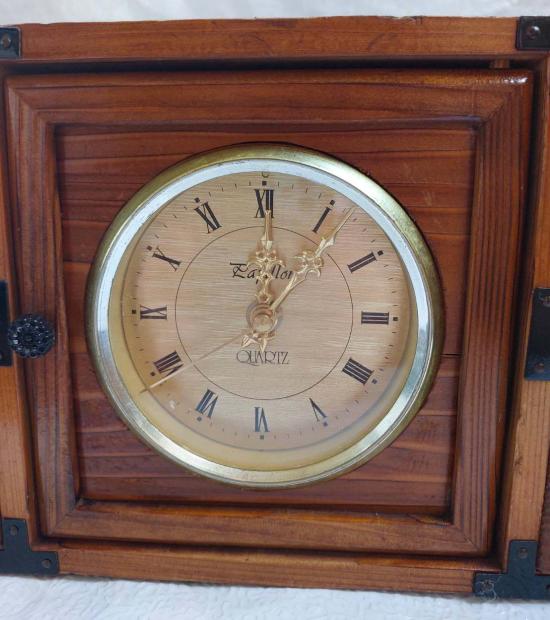 ชื่อพระเครื่อง ***วัดใจ***กล่องไม้วินเทจญี่ปุ่น แบบมีนาฬิกา งานฝีมือเก่า 4 ลิ้นชัก สามารถวางพระบูชา ทำจากไม้ซีดาร์เผา