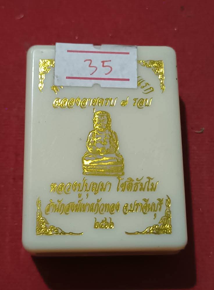 พระสังกัจจายน์ 7รอบรุ่นแรก ปี66 หลวงปู่บุญมา เนื้อทองทิพย์ซาติน ฝังพลอยแดง No.35 |
