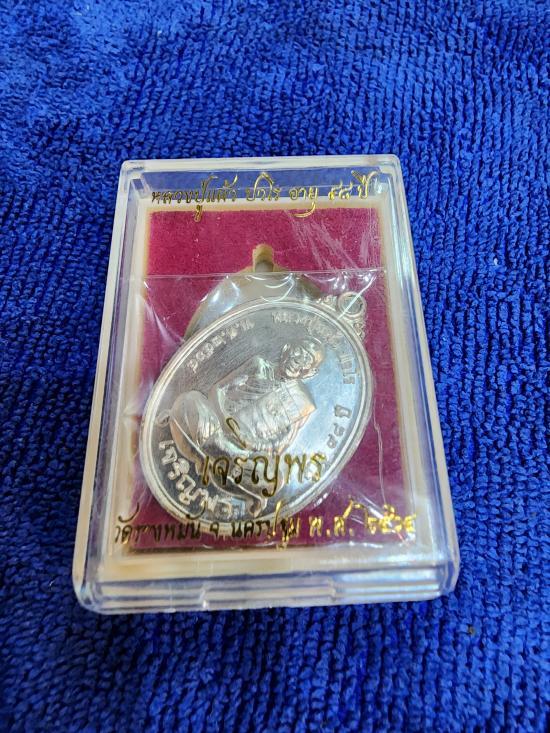เหรียญเจริญพรล่าง เนื้อเงิน หลวงปู่แผ้ว ปวโร วัดรางหมัน พร้อมกล่องเดิม |