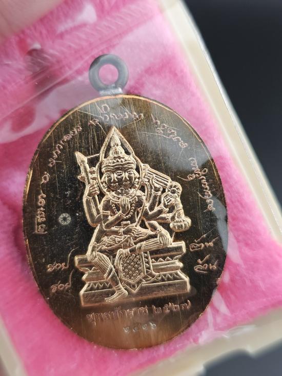 รายละเอียด หลวงปู่มหาศิลา เหรียญแกะสด ห่วงเชื่อม ไหว้ครูปี2567 รุ่น ยอดบารมี เนื้อมหาชนวนทองแดงผิวรุ่ง หลังหน้ากากพรหมทองสำเร็จ ใบฝอย+กล่องครบ เลข1416