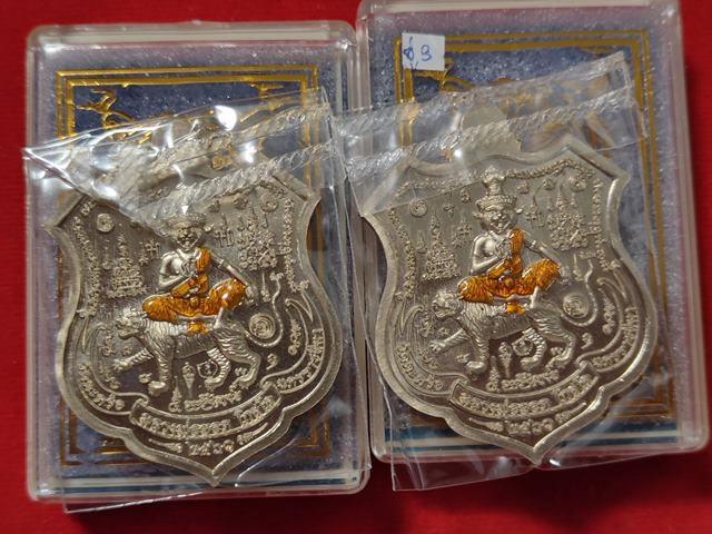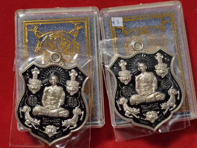 (2องค์) คู่ที่3 เนื้ออัลปาก้าลงยาดำ หลังฤาษีจีวร เหรียญ ๕ พยัคฆ์ หลวงพ่อยอด วัดตะคร้อ อำเภอโนนไทย จังหวัดนครราชสีมา |