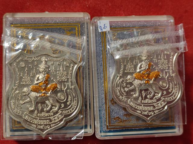 (2องค์) คู่ที่6 เนื้ออัลปาก้าลงยาดำ หลังฤาษีจีวร เหรียญ ๕ พยัคฆ์ หลวงพ่อยอด วัดตะคร้อ อำเภอโนนไทย จังหวัดนครราชสีมา |
