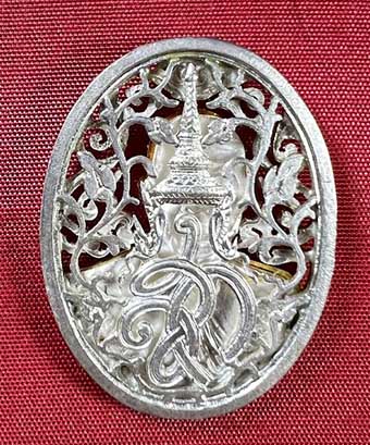 เหรียญลายฉลุ หลัง สก. หลวงพ่อคูณ วัดบ้านไร่ เนื้อเงิน หน้ากากทองคำแท้ ปี 2536