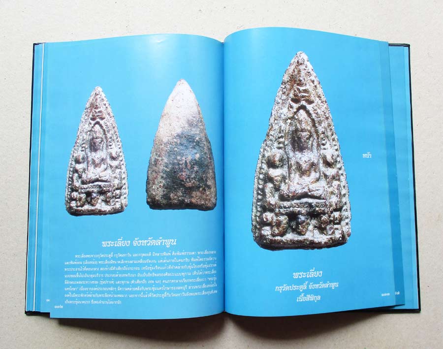 หนังสือพระพุทธรูป พระพิมพ์สกุลช่างหริภุญไชย รวบรวมภาพพระบูชายุคสมัยต่างๆ และ พระกรุสกุลลำพูน ปกแข็งขอบหนา ภาพพระแท้ สีสวย คมชัด 188 หน้า