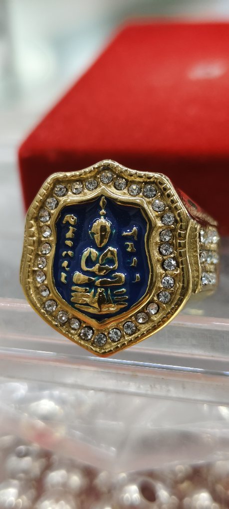 ชื่อพระเครื่อง เทขาดทุน++แหวนทองชุบยิงเลเซอร์ แหวนมหามงคลเสริมบารมี หน้าหลวงพ่อโสธรประดับ czสวยมาก สวยๆ