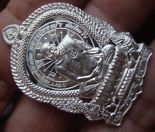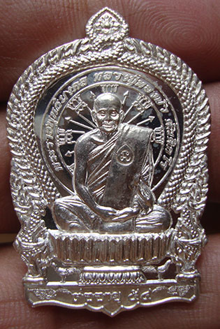 เหรียญนั่งพาน (เนื้อเงินขัดเงา) หลวงปู่ทองบัว วัดโรงธรรมสามัคคี จ.เชียงใหม่ ตอกโค๊ต หมายเลข 27 สวยเดิมค่ะ |