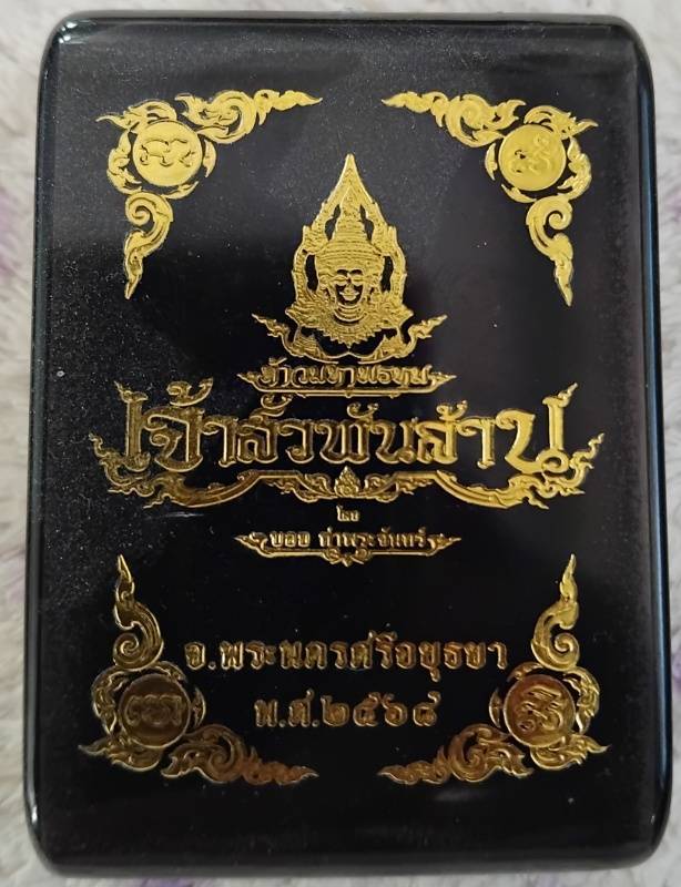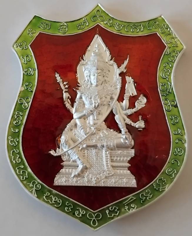 เหรียญมหาพรหม เจ้าสัวพันล้าน (จัดสร้างโดยบอย ท่าพระจันทร์) หมายเลขเลข1089 เนื้อเงิน ลงยาแดงคุ้ยพื้นขอบเขียว