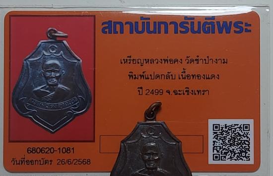 เหรียญ หลวงพ่อคง วัดซำป่างาม ฉะเชิงเทรา 2499 |