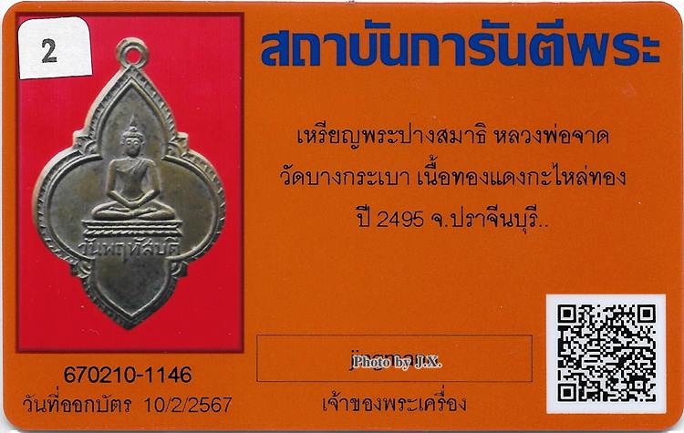 เหรียญ พระปางสมาธิ หลวงพ่อจาด วัดบางกระเบา จ.ปราจีนบุรี