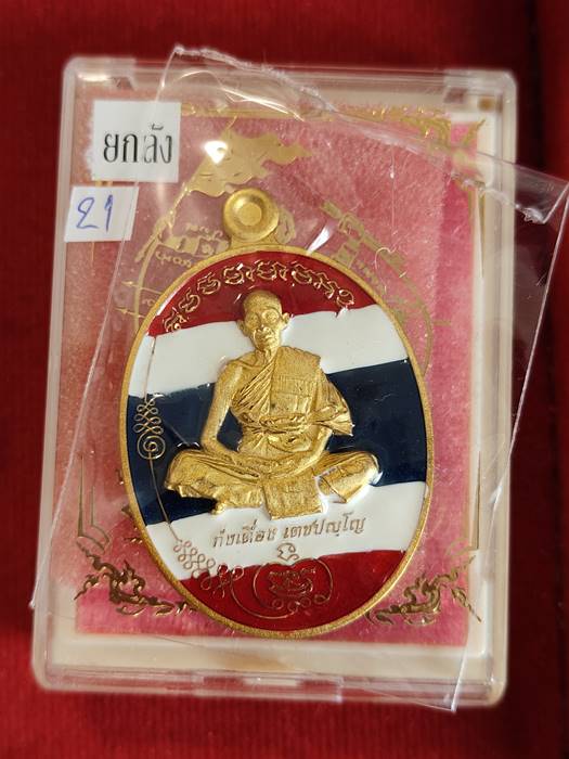 วัดใจ...เนื้อกะไหล่ทอง ลงยาธงชาติ เลข21 (แจกยกลัง และผู้ช่วยงาน) เหรียญ มนต์พระกาฬ รุ่นแรก
