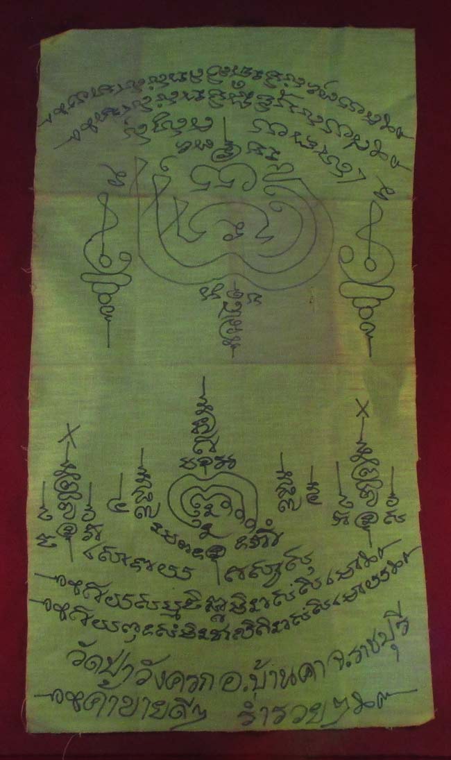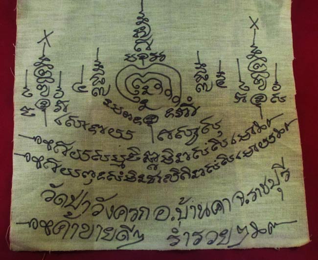 ผ้ายันต์ วัดป่าวังครก อ.บ้านคา จ.ราชบุรี จารยันต์ด้วยมือ ครับ (พระบ้าน ครับ) |
