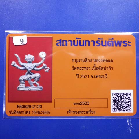 หนุมานหล่อโบราณ 4 กร เนื้ออัลปาก้า หลวงพ่อแล วัดพระทรง จ.เพชรบุรี ปี 2521....9.. (65.10.2