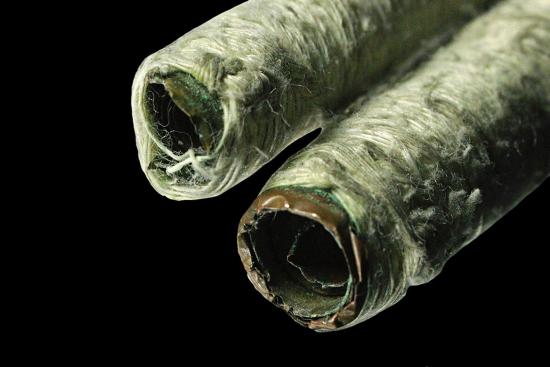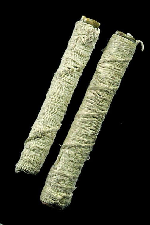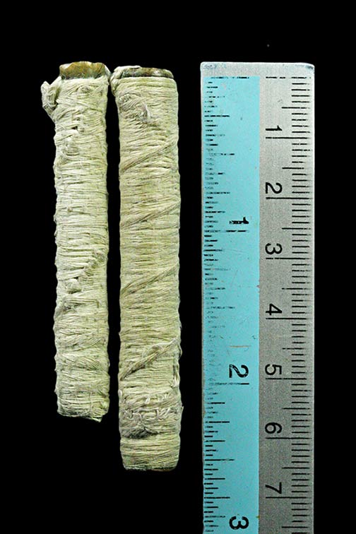 ตะกรุด คู่ ถักสายสิณธ์ เนื้อทองแดง ไม่ทราบที่ 2 ดอก |