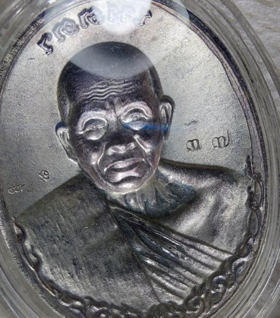 เหรียญรุ่นเมตตา พิมพ์ห่มเฉียง เนื้อเงินหลังแบบ ด้านหลังตอก 2 โค้ด และตอกหมายเลข no.37 เลี่ยมกันน้ำรักษาผิวไว้อย่างดีครับ