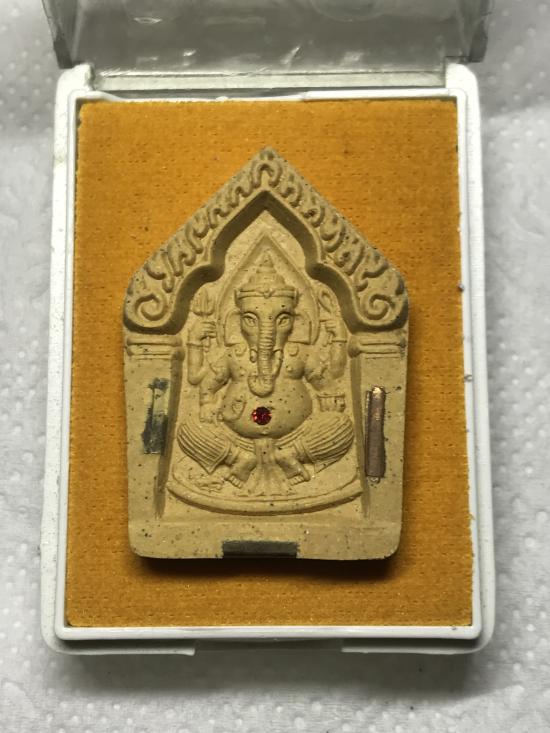 พระพิฆเนศ เนื้อผง ฝังพลอย ตะกรุด 3 กษัตริย์ รุ่น โชคดีมีสุข หลวงปู่หงษ์ วัดเพชรบุรี จ.สุรินทร์ ปี2547 พร้อมกล่องเดิม |