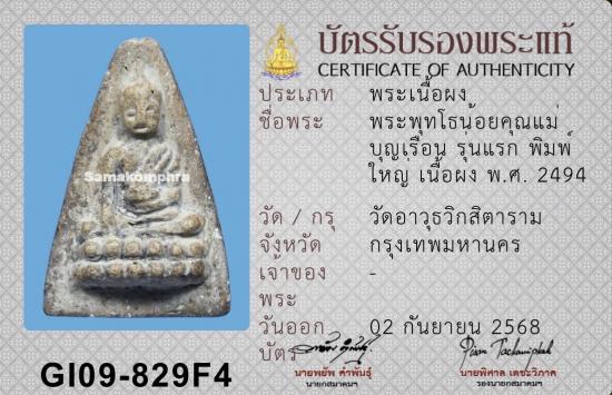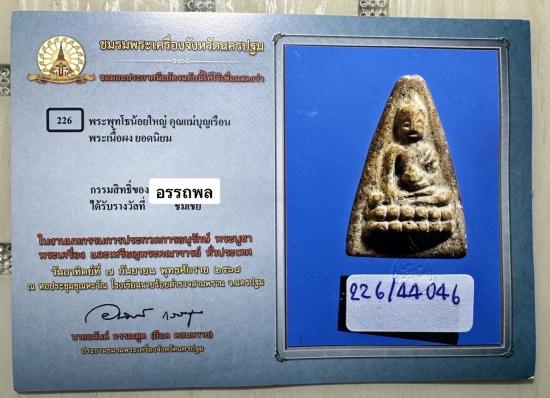 พระพุทโธน้อยพิมพ์ใหญ่เนื้อผงพุทธคุณรุ่นแรกปี2494.วัดอาวุธ.คุณแม่บุญเรือน สวยเดิมพร้อมบัตรสมาคม ติดรางวัลที่4งานสามพรานล่าสุดด้วยครับ รับประกันตามกฎ (บัตรอาจระบุสภาพต่างนะครับ)