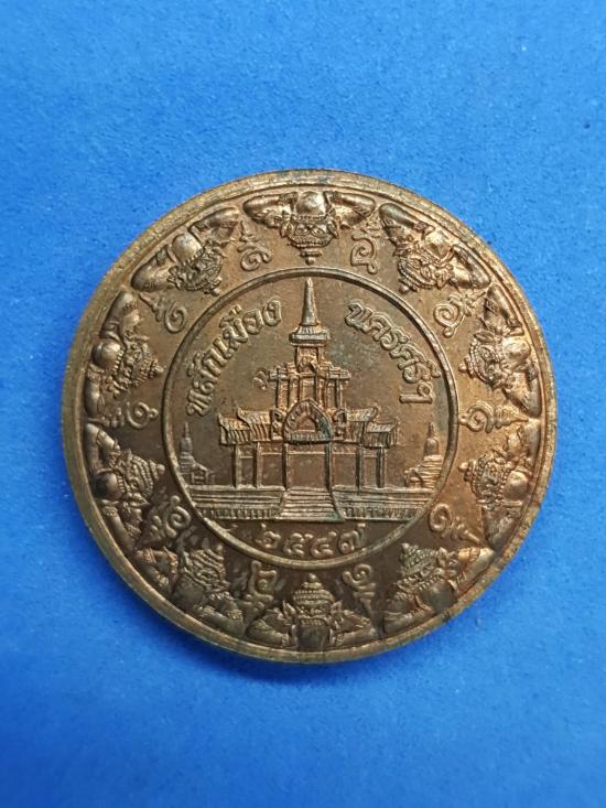 เหรียญนามปีบุรณะหลักเมืองนครศรี 2547 ปีวอก พญาชิงชัย ผิวไฟสวยงาม |