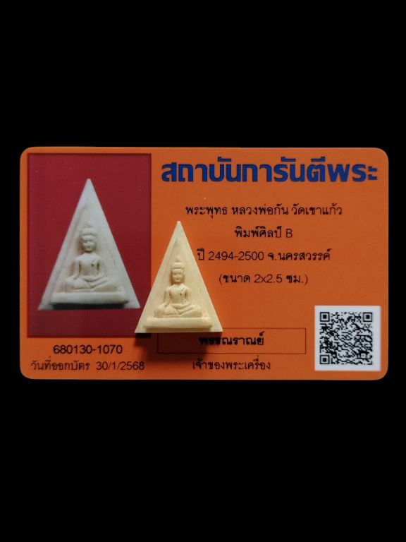 ชื่อพระเครื่อง พระพุทธ หลวงพ่อกัน วัดเขาแก้ว จ. นครสวรรค์ มาพร้อมบัตรรับรองพระแท้ พึ่งออกมาใหม่ๆ สบายใจได้ค่ะ