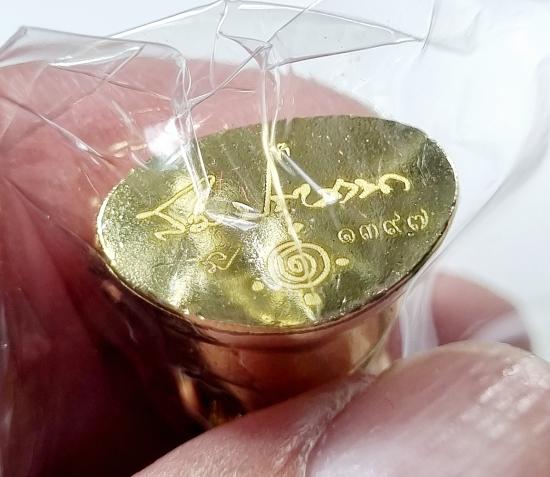 เมตตาเขียนตัวอย่างยันต์ ปิดก้นพระกริ่ง และมอบแผ่นพระยันต์เพื่อเป็นชนวนหล่อ พร้อมพุทธาภิเษกวาระแรก